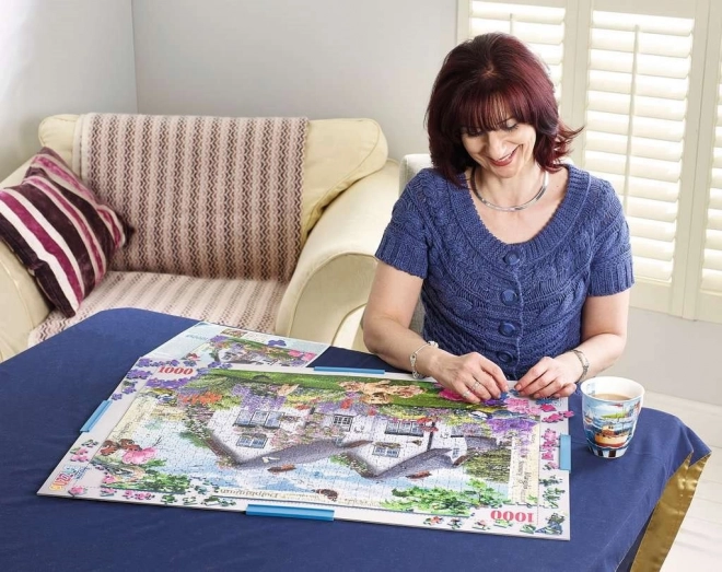 Zložljiva podloga RAVENSBURGER Puzzle Handy je pametna rešitev za ljubitelje sestavljank z omejenim prostorom. Zahvaljujoč vodilnim črtam za standardne dimenzije 500 in 1000 kosov (klasična oblika, ne panorama) lahko enostavno sestavite in prenesete razdelano sestavljanko brez skrbi, da bi se kosi raztresli.
