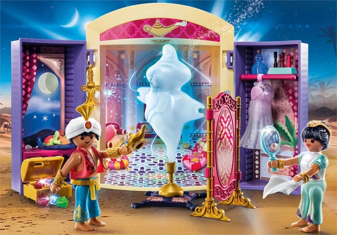 Odkrijte čarobni svet Orienta z igralnim boxom PLAYMOBIL Magic. V kompaktni set so vključeni princ, princesa in skrivnostna čudežna svetilka z džinom, ki spodbuja domišljijske zgodbe. Vse preprosto shranite v zaprt škatlasti kovček z ročajem – idealno za na pot. Primerno za otroke od 4 let.