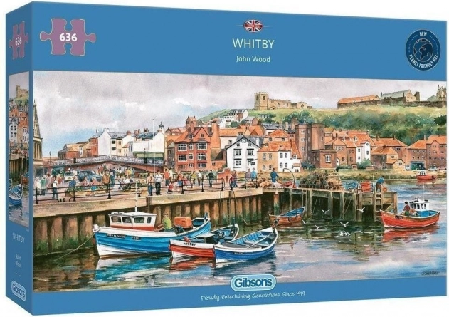Odkrijte lepote Whitbyja v Yorkshireu s to panoramsko sestavljanko znamke Gibsons. Sestavljanje te sestavljanke s 636 kosi vas popelje v slikovito pristanišče, kjer nad živahnimi ulicami izstopa ruševina opatije Sv. Hilda na klifu East Cliff.