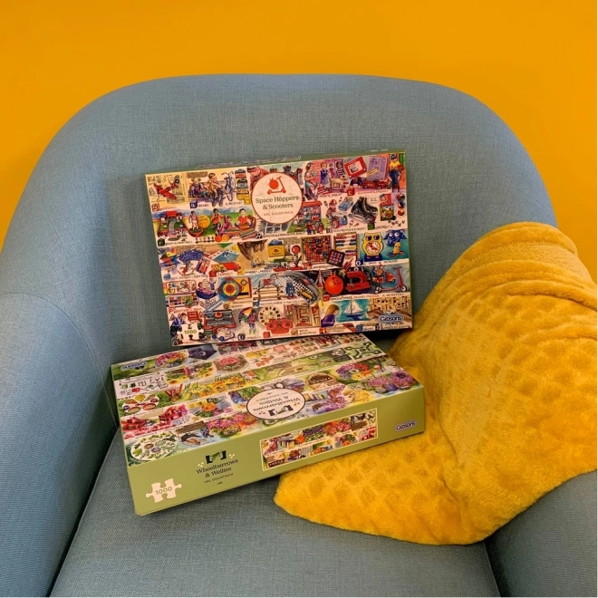 Uživajte v urah sprostitve s kakovostnimi sestavljankami GIBSONS. Motiv vaškega dvorišča s samokolnicami in škornji ponuja podrobno ilustracijo in prijeten izziv. 1000 kosov ter približne mere po sestavi 68 × 49 cm. Napisi na sestavljanki so v angleščini.