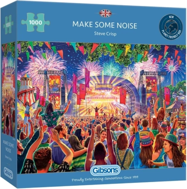 Gibsons sestavljanka Naredite nekaj hrupa, 1000 kosov s predlogo. Kakovostna britanska izdelava, dimenzije po sestavi 68 × 49 cm. Odlična izbira za ljubitelje sestavljank.