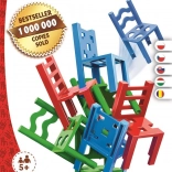 Zabavna spretnostna igra TREFL Mistakos: stoli prinaša napetost in smeh v vsak družinski trenutek ali na zabavo. Naloga je spretno zlagati stolčke enega na drugega in obdržati majavo stolp v ravnotežju. Igro lahko igrate na dva načina, zato se je ne boste hitro naveličali. Barvni plastični stolčki so varni, lahki in idealni za razvoj fine motorike, potrpežljivosti in strateškega razmišljanja. Priporočeno od 5 let.