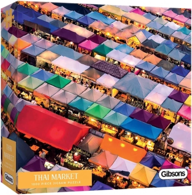 Popeljite se na živahne ulice Azije z motivom tajske tržnice in uživajte v mirnih trenutkih sestavljanja. Sestavljanka GIBSONS izstopa z natančnim izrezom in živahnimi barvami, ki poudarijo podrobno ilustracijo, polno življenja in vzdušja.