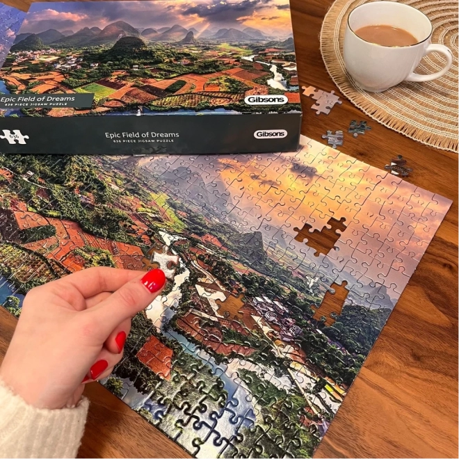Uživajte v miru ob sestavljanju panoramskih puzzlov znamke GIBSONS z motivom impresivne pokrajine iz območja Guilin na Kitajskem. Puzzle imajo 636 koščkov, po sestavitvi merijo 68,5 × 32 cm in v pakiranju najdete tudi predlogo. Fotografija Neila Dankoffa obljublja vrhunsko vizualno doživetje.
