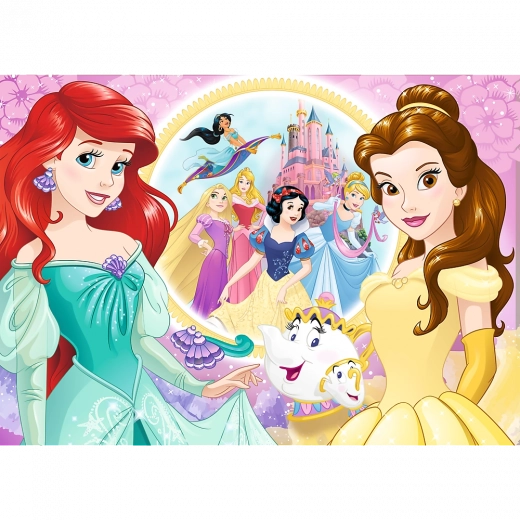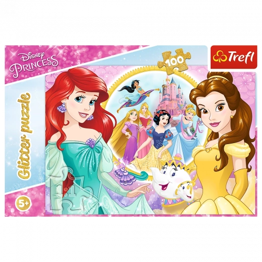 Čarobna otroška sestavljanka z motivom Disneyjevih princes Belle in Ariel bo razveselila vse male oboževalce. Sestavljanka ima 100 koščkov in je okrašena z nežnimi zlatimi bleščicami, ki dajejo sliki in škatli edinstven sijaj. Po sestavljanju nastane slika velikosti 410 × 278 mm.