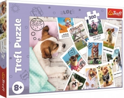Sestavljanka Fotografije z dopusta s 300 deli ponuja zabaven izziv za vsakega ljubitelja sestavljank. Predstavljajo smešne slike psov s potovanj in so idealne za trenutke sprostitve.