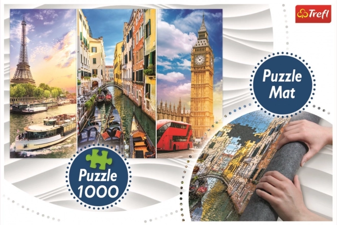 TREFL sestavljanka kolaž mest Pariz–Benetke–London 1000 koščkov + rolo podloga