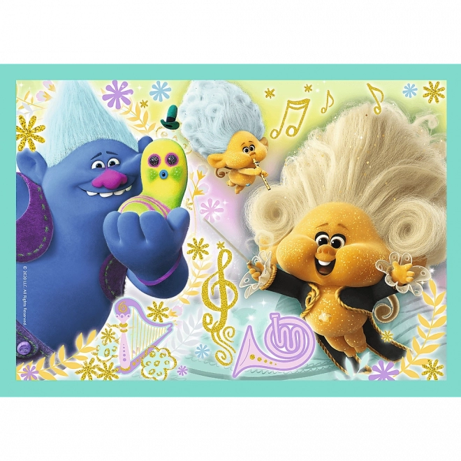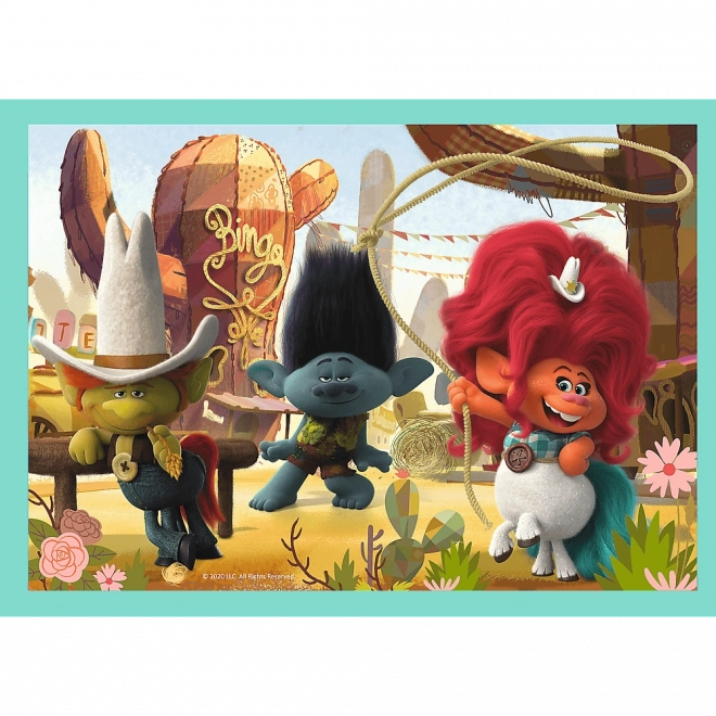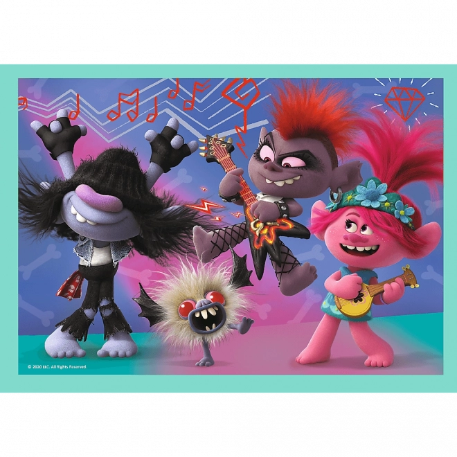 Uživajte v zabavi s priljubljenimi junaki iz filma Troli 2: Svetovna turneja v kompletu 4v1. Progresivne sestavljanke ponujajo različne težavnostne stopnje s 35, 48, 54 in 70 koščki, idealno za razvoj spretnosti otrok od 4 let naprej. Vsaka slika meri po sestavljanju približno 28,5 × 20,5 cm.