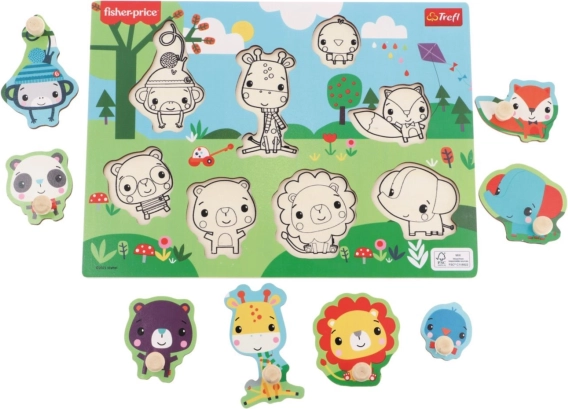 Odkrijte prvo sestavljanko, ki otroke na igriv način uči prepoznavati oblike in živali. Lesena vstavljanka z motivi divjih živali blagovne znamke FISHER-PRICE je zasnovana za male rokice – vsak košček ima praktičen ročaj za enostaven oprijem.