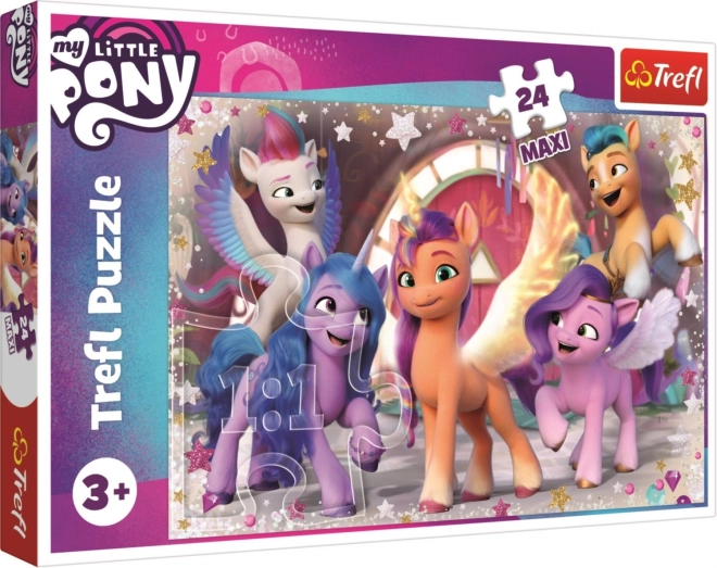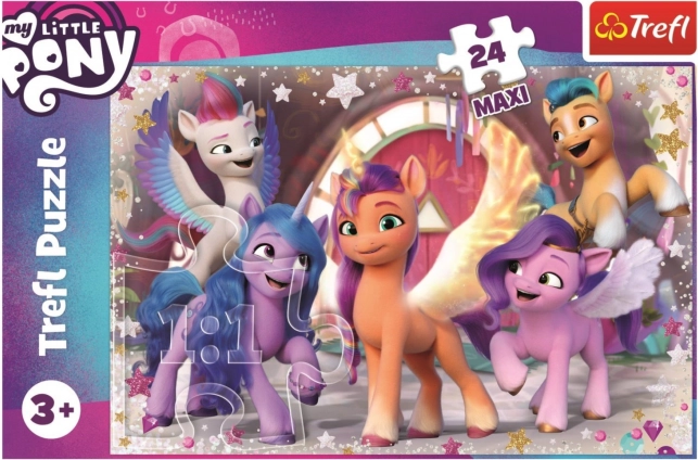 Puzzle Maxi 24 za sestavljanje slike velikosti 600x400mm je popolna izbira za male in velike ljubitelje filmov Pony. Vsak kos je iz kvalitetnega kalandriranega papirja, ki odbija svetlobo, kar olajša sestavljanje. Izdelek je bil izdelan na Poljskem z ekološkimi materiali.