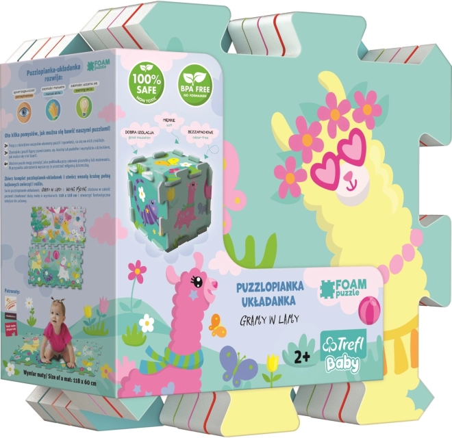 Pene puzzle vesele lame TREFL ponujajo udoben in varen prostor za igro. Zahvaljujoč posebnemu večslojnemu materialu, podobnemu debeli podložni blazini, je podloga čvrsta, mehka in trpežna, hkrati pa je z njo zelo enostavno ravnati in jo dobro shranjevati. Motiv ljubkih lam bo razveselil vsakega otroka in spodbudil njegovo domišljijo.