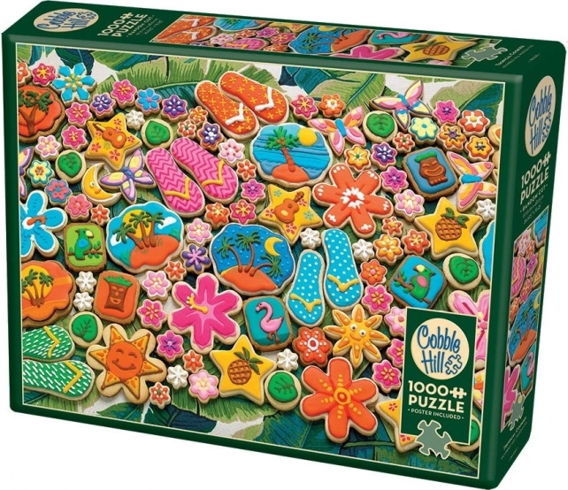 Sestavljanka COBBLE HILL Tropski piškoti 1000 koščkov bo razveselila vse ljubitelje sestavljanja, ki iščejo izziv in čudovit motiv. Posebno izsekovanje z nepravilnimi koščki se razlikuje od običajne mreže, zato je sestavljanje bolj zabavno in zahtevno. Kakovosten tisk in intenzivne barve motiva tropskih piškotov izstopajo v vsakem prostoru.