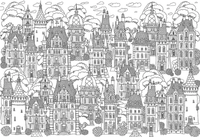 Edinstvena kombinacija sestavljanja sestavljanke in antistresnega barvanja. Po dokončanju sestavljanke z motivom mesta, polnega izvirnih hišic, lahko sliko pobarvate po lastni domišljiji.