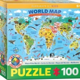 Uživajte v zabavi in učenju s puzzli Ilustrirani zemljevid sveta, ki so idealni za otroke od 5. leta dalje. Obogatite njihovo znanje geografije s tem čudovitim in poučnim zemljevidom, zapakiranim v priročni kvadratni škatli.