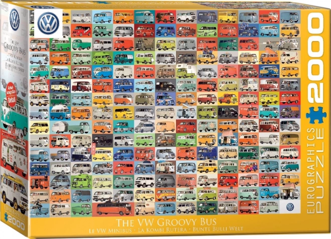 Ta vrhunska sestavljanka EUROGRAPHICS z motivom VW Groovy Bus prinaša svežo retro atmosfero in barvit kolaž legendarnih avtomobilov znamke Volkswagen. Zahvaljujoč premišljeni izvedbi in izvirnemu dizajnu boste uživali v zabavnem sestavljanju in efektnem rezultatu v velikosti približno 99,7 × 67,6 cm.