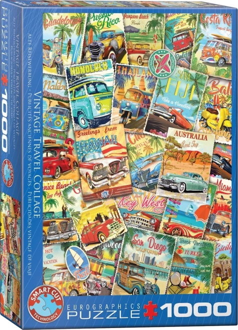 Uživajte v pametni zabavi s sestavljanko EUROGRAPHICS z motivom retro popotniške kolaže s 1000 koščki. Zaradi edinstvene štance imajo koščki nenavadne oblike, kar povečuje težavnost in zabavnost. Po sestavi nastane slika velikosti približno 48 × 68 cm – idealna za uokvirjanje.