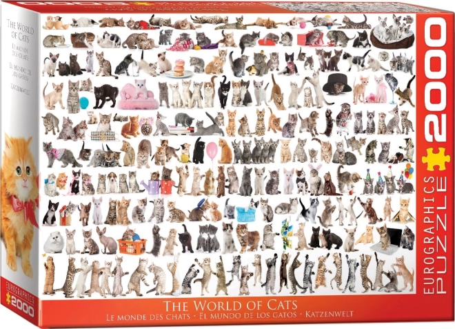 Uživajte v svetu mačk v velikem formatu s sestavljanko EUROGRAPHICS. Z 2000 koščki, nepravilnim izsekom in neobičajnimi oblikami ponuja sestavljanje višjo zahtevnost in dolge ure zabave. Po sestavi slika meri približno 99,7 × 67,6 cm.