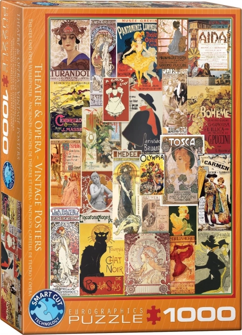 Odkrijte čar zgodovinskih plakatov opere in gledališča na kakovostni sestavljanki znamke EUROGRAPHICS. Zahvaljujoč edinstvenemu rezalnemu vzorcu koti in robovi kosov niso v eni osi, kar poveča zahtevnost in hkrati zabavnost sestavljanja. Idealno za bolj izkušene sestavljavce, ki iščejo izviren izziv in stilsko končno podobo.