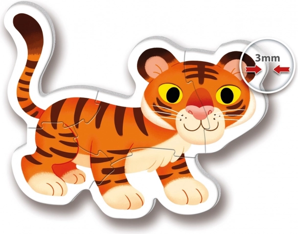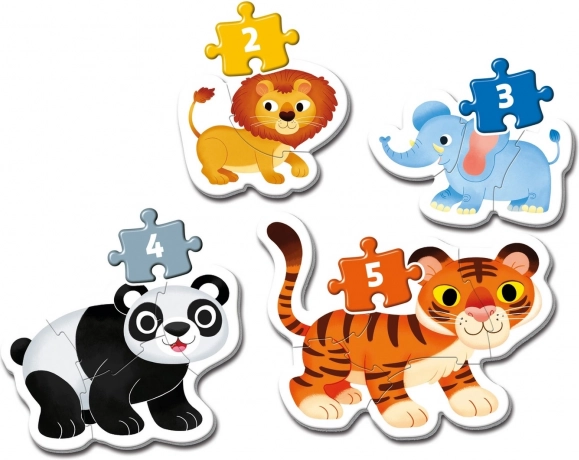 Ta set vsebuje štiri samostojne sestavljanke z motivi priljubljenih safari živali. Zaradi različnega števila koščkov (2, 3, 4 in 5) otrok postopoma pridobiva samozavest in veselje pri sestavljanju. Veliki, čvrsti koščki debeline 3 mm so prilagojeni malim otroškim rokam in omogočajo enostavno rokovanje.