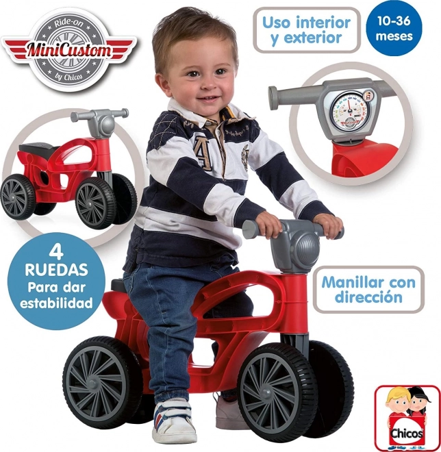 Rdeči otroški poganjalec Mini Custom podpira naravni razvoj motorike in ravnotežja ter hkrati ponuja veliko zabave doma in na vrtu. Zaradi kompaktnih mer 54 × 22,5 × 38 cm in višine sedeža 27 cm se otroci zlahka odrivajo in varno vstopajo.