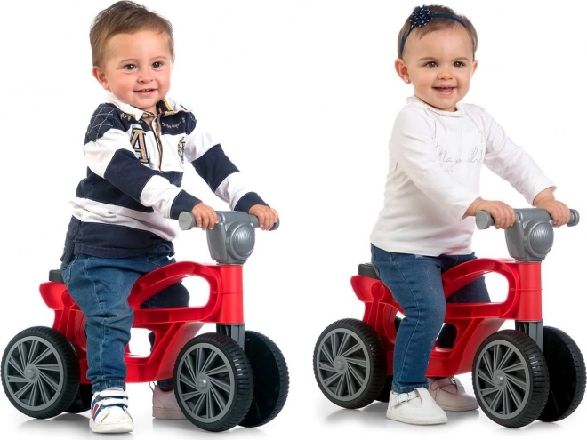 Hura v akcijo! Ta privlačen poganjalec v obliki motorja je idealen za najmlajše voznike, ki začenjajo odkrivati svet in se učijo ohranjati ravnotežje. Zahvaljujoč štirim kolesom je lahek, varen in stabilen, ima odlično odpornost materiala in je primeren za uporabo v notranjih prostorih in na prostem. Popolna izbira za otroke od 10 mesecev do 3 let.