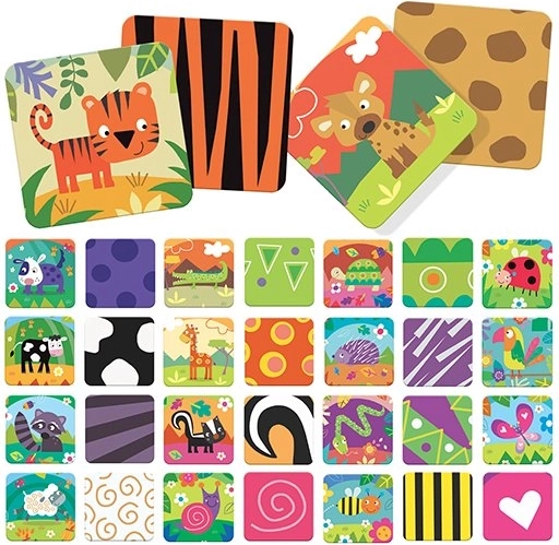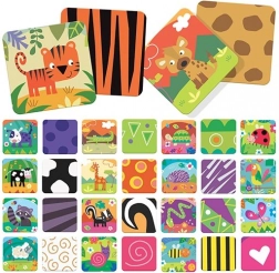 Set vsebuje 50 kartic (25 parov) z logičnim razporejanjem živali glede na okolje: travnik, pragozd, savana, gozd in kmetija. Zahvaljujoč trdim in vzdržljivim karticam ter živahnim barvam in oblikam je igra privlačna in dolgotrajno uporabna. Ponuja več načinov igranja in je odlična za predšolske otroke, stare 3–6 let.