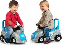 Stabilno podvozje, izbokline proti prevrnitvi naprej in nazaj ter udoben sedež z naslonom dajejo otrokom gotovost pri vožnji in vstajanju. Volan spodbuja vadbo fine motorike in orientacije, medtem ko kompaktne mere olajšajo uporabo doma in na prostem.