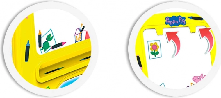 Ta tabla je priljubljen izdelek za majhne otroke od 18 mesecev, ki radi rišejo in ustvarjajo. Zaradi barvitega okvirja z motivom prašička Peppa ta tabla pritegne in spodbudi vsak otroški umetniški projekt.