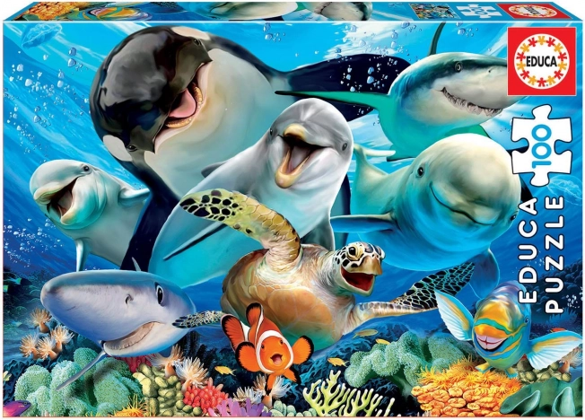 Odkrijte čarobnost zabave s sestavljanko Educa, ki vsebuje stotino kosov in čudovit motiv podvodnih selfijev, ki navduši vsakega ljubitelja morskega sveta.