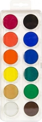 Plastična pravokotna paleta je lahka, trpežna in praktična za prenašanje v šolo ali atelje. Set 12 barv pokrije osnovno paleto za slikanje na papir, karton ali akvarelne bloke.