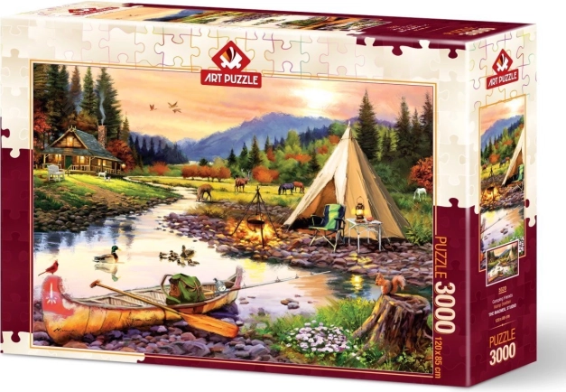 Uživajte v sprostitvi ob sestavljanju velike sestavljanke z motivom kampiranja znamke ART PUZZLE. Vsebuje 3000 koščkov in ima po sestavitvi približno mere 120 × 85 cm. Proizvajalec dodatno ponuja storitev pošiljanja manjkajočega koščka ob izpolnjevanju določenih pogojev.