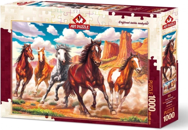 Uživajte v sprostitvi in zabavi s sestavljanko z motivom divjih konj v slikoviti dolini. Sestavljanka s 1000 koščki ponuja kakovostno izdelavo, natančne izreze in končno sliko v dimenzijah pribl. 68 × 48 cm. Proizvajalec ART PUZZLE dodatno nudi storitev pošiljanja manjkajočega koščka.