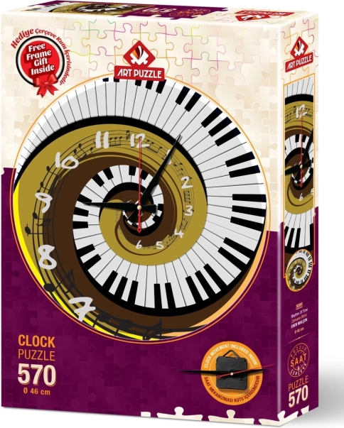 Odkrijte izvirno povezavo sestavljanja in dizajna: puzzle ura z motivom klaviatur, ki jo po sestavljanju spremenite v funkcionalno stensko uro. Paket ponuja 570 koščkov, trdno podlago, urni mehanizem in okvir s spojkami. Odlično darilo za ljubitelje puzzlov in glasbe.