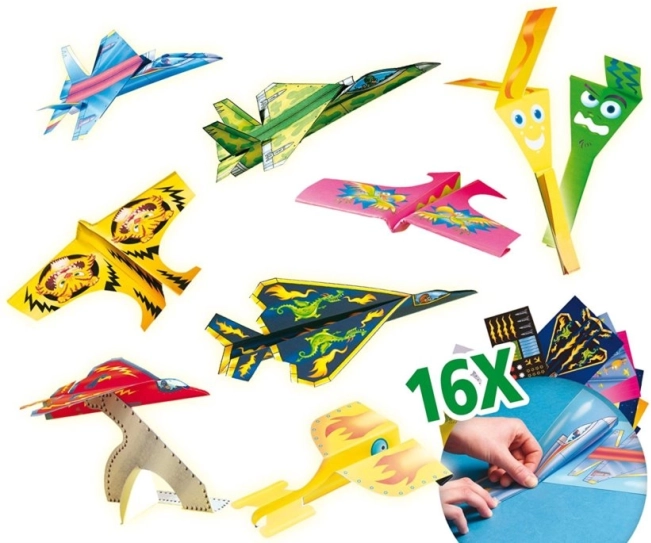 Komplet spodbuja ustvarjalnost, potrpežljivost in fino motoriko. Primeren je za ustvarjanje doma, šolske projekte in otroške zabave. Le zloži, okrasi in preizkusi, kako daleč bo papirnato letalo poletelo!