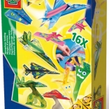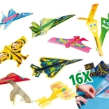 S tem ustvarjalnim kompletom si bodo otroci izdelali svojo floto papirnatih letal. Izberejo motiv iz šablon, po navodilih letalo zložijo in ga okrasijo s priloženimi nalepkami za krila in rep. Preprosti postopki zagotavljajo hiter uspeh in veliko veselja pri letenju.
