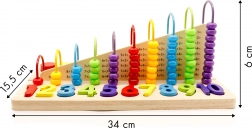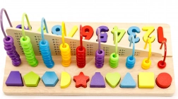 Del kompleta je lesena plošča z operacijami seštevanja in odštevanja. Premikanje kroglic z ene strani na drugo omogoča otroku doseganje rezultatov, kar je odličen način za učenje reševanja preprostih enačb.