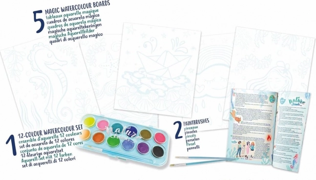 - 5 posebnih predlog, 12 akvarelnih barv, 2 čopiča
