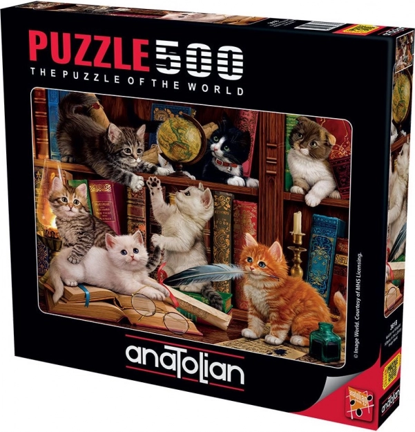 Odkrijte čar kreativnega sestavljanja s specializirano sestavljanko Mačke v knjižnici. Ta čudovit motiv vas popelje v svet knjig, kjer mačke delajo družbo igralcem med vsakodnevnim počitkom.