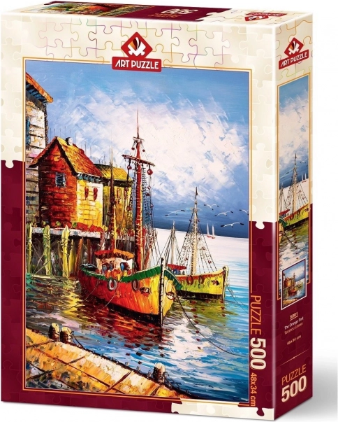 Uživajte v kakovostno izdelani sestavljanki z motivom oranžno obarvanega pristanišča. Zaradi 500 kosov je odlična za prijeten večer ali kot darilo za ljubitelje sestavljank. Po dokončanju nastane dekorativna slika velikosti približno 34 × 48 cm.