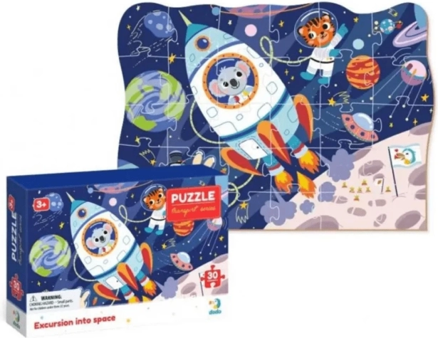Podajte se z otroki v vesoljsko pustolovščino. Sestavljanke DODO iz prevozne serije razvijajo fino motoriko, zbranost in domišljijo. Zahvaljujoč obrisnemu robu jih otroci lažje sestavljajo, končno sliko pa je mogoče povezati z drugimi motivi (kmetija, živahno gradbišče, gasilski posredovanje) v večji prizor.