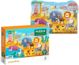 Odkrijte zabavo in učenje v enem s puzzli DODO Živali: Vročina v Afriki. Otroci sestavijo barvit prizor iz afriške narave ter hkrati urijo fino motoriko, koncentracijo in domišljijo. Zahvaljujoč obrisnemu robu je sestavljanje lažje tudi mlajšim otrokom.