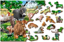 Lesene puzzle WOODEN CITY ne ponujajo le neskončne zabave, temveč tudi estetski užitek zahvaljujoč posebej oblikovanim koščkom. Koščki v oblikah živali in predmetov so obogateni s podrobnostmi, ustvarjenimi z laserjem, ki lahko služijo tudi kot majhne figurice. Zaradi obojestranske zasnove lahko puzzle sestavljate po sliki na eni strani ali po vzorcu oblik na drugi. Ta koncept ne ponuja le višje zahtevnosti, temveč tudi podpira reševanje problemov in prostorsko zaznavanje.