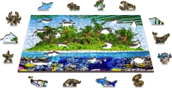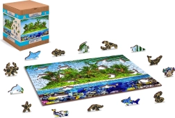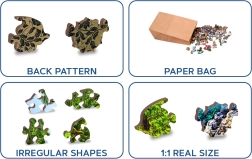 Ta kakovostna lesena sestavljanka iz HDF plošče debeline 3–4 mm bo razveselila vse ljubitelje sestavljank, ki iščejo izviren izziv. Zahvaljujoč dvostranski izvedbi 2v1 lahko sestavljate po podobi tropskega raja ali po ponavljajočem se vzorcu na hrbtni strani, ki preizkusi vašo domišljijo.