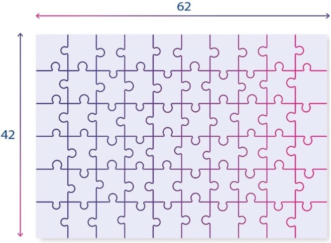 - Dimenzije sestavljene sestavljanke: približno 62 × 42 cm.