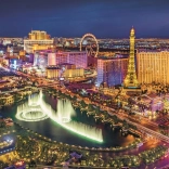- Las Vegas, nočno panoramsko prikazovanje Stripa z vodometi