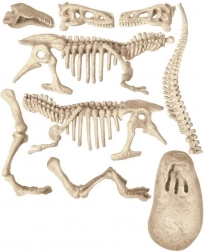 S priloženim kladivcem in dletcem si otroci urijo fino motoriko in potrpežljivost. Ilustrirana navodila v slovenščini (in drugih jezikih) jih korak za korakom vodijo od izkopavanj do sestavljanja realističnega modela okostnjake.