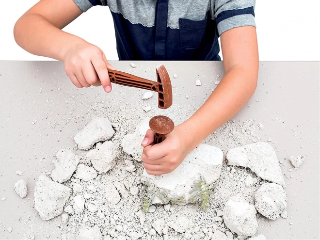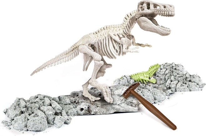 Del kompleta so blok zemlje, kladivce in dletce. Otroci preizkusijo prave izkope in nato iz najdenih delov sestavijo podrobno okostnjako T‑Rexa.
