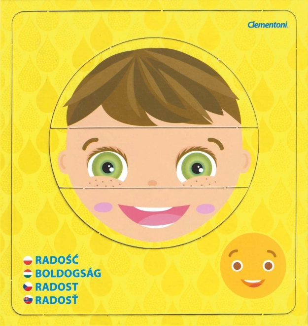 Odkrijte svet čustev z otroško sestavljanko CLEMENTONI Young Learner. Vsaka od 6 slik je sestavljena iz 3 koščkov in prikazuje različno razpoloženje z imenom občutka in ustreznim emotikonom. Otroci lahko obraze sestavljajo samostojno ali jih vstavljajo v okvirje ter se tako na igriv način urijo v prepoznavanju izrazov.