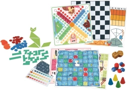 Na petih dvostranskih ploščah najdete med drugim Konje, Damo, Gusjo igro, Lestve in kače, Bolhje dirkališče, Ovce in volkove, Črto, Adugo, Dirkališče, Kaskado bolh, Bagh Chal, Lau Kati Kata ter logični sestavljanki Pentamimo in Tangram. Zaradi različnih težavnosti je odlična izbira tako za otroke kot odrasle.