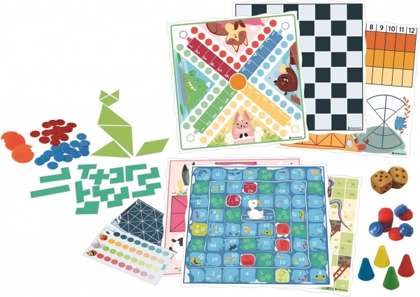 Odkrijte brezčasno zabavo z bogatim kompletom, ki združuje priljubljene klasike in manj znane strateške igre. Zahvaljujoč preglednim navodilom in popolni opremi boste uživali v urah kakovostne družinske in prijateljske zabave.